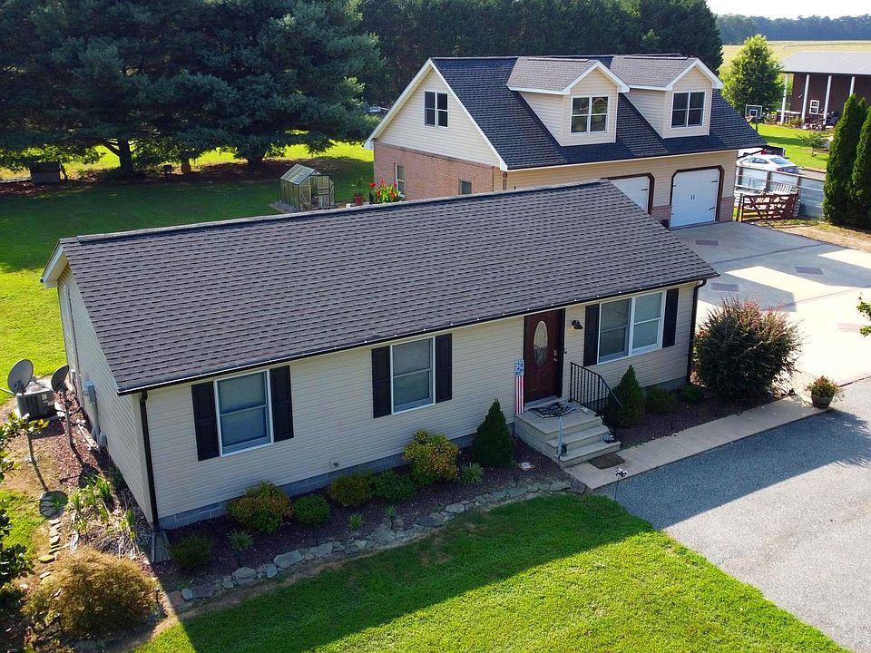 This 3 bedroom charming country home is situated on 1.39 acres with no deed restrictions or HOA and is fully fenced in. The country kitchen has stainless steel appliances , new counter tops and a large pantry. The roof, shutters, and HVAC are all brand new. The oversized garage,44x32, has a new roof, 11 inch concrete for heavy equipment, industrial air compressor for all your air powered tools, and a wood stove. The Stairs lead to a spacious loft with dormer windows, totally floored with electric already run throughout, ready to be finished into another home,(1300 sq. ft.) mother in law suite, perhaps. There is a patio on the backside to host your parties or bonfires. The property is adorned with mature trees, including a gorgeous Magnolia and fruit trees, making it totally private, peaceful and serene. The property is perfect for gardens, pets, or a pool. This home is located on a lovely back country road, the scenic route. Come tour this home before it is gone.