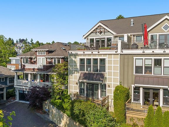 *Verbally Agreed Offer* Proudly set upon Queen Anne’s coveted West Slope, this Craftsman-style townhome captures sweeping views range from Interbay, over the shipping lanes of Elliott Bay and toward the Olympic Mountains beyond. A rare main-floor primary suite and reverse floor plan lead to a sunlit Great Room opening through French doors to a rooftop deck, ideal for entertaining or sunset views. Downstairs offers two bedrooms, a full bath, laundry, and a large family room with its own deck. Timeless character shines through the use of wainscoting, rich millwork, built-ins, wood floors, and plantation shutters. A 2-car garage plus off-street parking completes this exceptional home of style, comfort, and elevated Seattle living.
