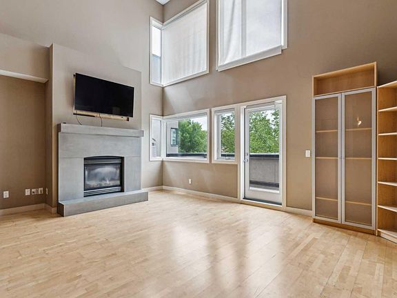 LIVE STYLISHLY in the vibrant inner-city, west-facing penthouse loft at The Greystones. Featuring 2 bedrooms, 2 full baths, and nearly 1,000 sq ft of open-concept space with soaring ceilings, large windows, and a cozy fireplace. The modern kitchen boasts granite counters, a gas stove, stainless steel appliances, and a breakfast bar—perfect for entertaining. Retreat to the lofted primary suite with a spa-inspired ensuite, or relax on your private west-facing balcony. Just steps from 17th Ave's shops, cafes, and nightlife, and minutes to downtown and the river. Titled underground parking and storage included. Urban living at its finest.