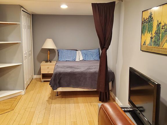 Furnished rental with everything included, previously an Airbnb. Quiet and set back from the street. All utilities and wifi are included. One month's security deposit required.