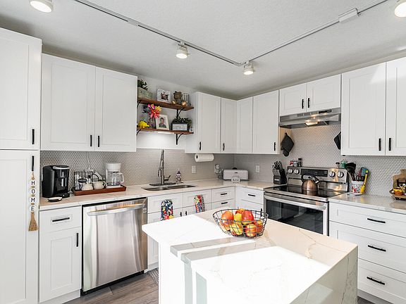 Step onto this redesigned patio, encased in overlaying plank fencing for utmost privacy, as luxury unfolds around you. Two sheds, one tailored for him, the other for her. The kitchen, a haven for chef enthusiasts. State-of-the-art appliances including an LG Side-By-Side Glass Front Refrigerator with a bottom freezer, glass top stove, microwave, and premium fixtures. Its centerpiece is a spacious quartz waterfall edge island. Soft-close drawers add a touch of seamless convenience and luxury.Throughout the home, beautiful Luxury Vinyl Plank flooring complements freshly painted walls. Bathrooms are adorned with ceramic tiles, beautiful cabinets. Each room boasts multi-setting ceiling fans with remote controls, alongside a Nest smart home thermostat, ensuring year-round comfort. Dynamic multi-changing recessed lighting in the family room sets the perfect mood for any occasion. HOA fee covers water, trash & internet.