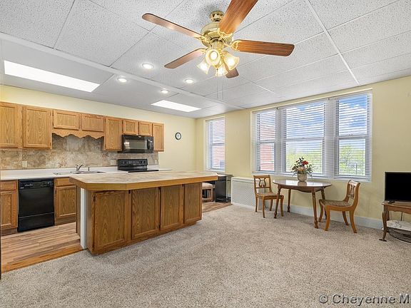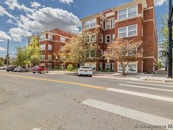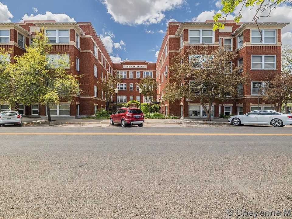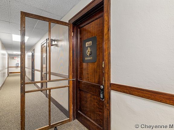 Welcome to the Historic Landmark Condo Community in Downtown Cheyenne! This third floor corner unit is very private, with huge windows which allows for tons of natural light and overlooks the beautifully landscaped courtyard patio, garden and tree lined streets. You'll love this charming renovated condo which features an open floor plan, new carpet, large kitchen with a center island, wood blinds, huge walk in closets and a spacious bedroom. A One-car garage is ALSO included. This Secure building has gorgeous wood accents and stair rails though with wood doors to each unit. Off-street parking, meeting space, laundry facility, and a guest bedroom are also available for the owner's use.