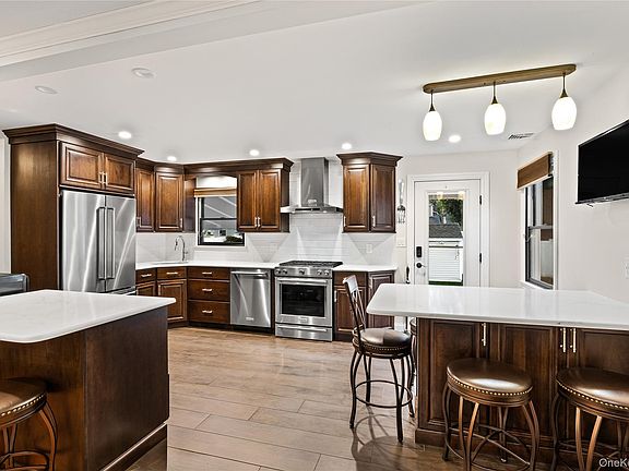 ALLOW US TO FORMALLY INTRODUCE YOU TO THIS BEAUTY ON GORMLEY!!! STUNNING 4 BEDROOM, 2 FULL BATH EXPANDED CAPE IN THE HEART OF MERRICK! OPEN LAYOUT WITH GLEAMING HARDWOOD FLOORS AND CROWN MOLDINGS. THE RECENTLY RENOVATED GOURMET KITCHEN INCLUDES STAINLESS STEEL APPLIANCES, GAS COOKING, DUAL QUARTZ ISLANDS, AMPLE CABINETRY, AND DIRECT ACCESS TO THE BACKYARD. TWO SPACIOUS FIRST-FLOOR BEDROOMS WITH A FULL BATH. UPSTAIRS, A REAR DORMER EXPANSION CREATES GENEROUSLY SIZED BEDROOMS WITH HARDWOOD FLOORS AND ANOTHER FULL BATH. ENTERTAIN IN STYLE IN THE FULLY FINISHED BASEMENT, PERFECT FOR GAME DAY, COMPLETE WITH A BONUS ROOM AND LAUNDRY. EXTRAS INCLUDE CENTRAL AC, ANDERSON WINDOWS, IN-GROUND SPRINKLERS, SECURITY SYSTEM, 1-CAR GARAGE, AND A GORGEOUS BACKYARD WITH PAVER PATIO AND AWNING!