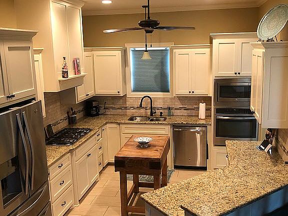 Home only 6 years old move in ready All bedrooms are large all featuring walk in closets 13 ft and 10 ft ceilings Formal dining with wood ceiling and built in China cabinet Never ending hot water tank Gas fireplace Ge appliances