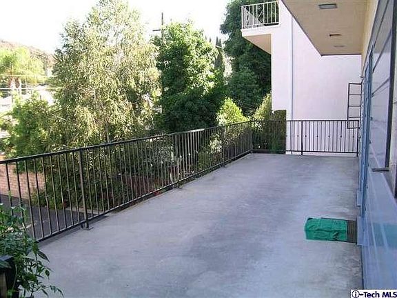 This is a very special property in a quiet, tree shaded, residential neighborhood. The back house/unit, built over the 3 car garage, is a beautifully maintained 1 bedroom with refurbished full bath + tiled stall shower. There are many windows and natural light. Refinished hardwood floors, FA/CA, Tankless Water Heating system, updated wiring, and free standing stove. Living Room has indirect ceiling lighting and picture window overlooking large balcony and trees. Single car garage with washer and dryer for tenant's exclusive use. Approximately 10x20 balcony/patio with a tree top and hills view, that the living room overlooks, is exclusively for the tenant's use. 1/2 block to park, Deli, and bus stop and a short way to Montrose Shopping Park.