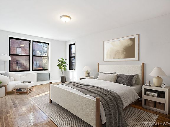 West-facing windowsSpacious bedroomLush courtyard vistasSerene street viewsCozy dining areaBrand-new appliancesModern windowed eat-in kitchen