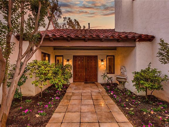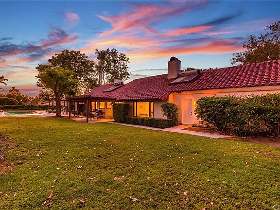 Don't miss out on the this one of a kind custom built home designed by famous Riverside architect Charlie Brown and built by Jim Guthrie in the highly sought after neighborhood of Hawarden Hills. Located on a quiet street this Spanish style home features extreme privacy with no front facing windows and very private and secluded surroundings. Upon entering the house you see straight through to the magnificent pool and Jacuzzi, there are hardwood floors in the dining & living room, custom tile throughout the rest of the house with new carpet in the bedrooms. Custom built pecan wood cabinets are throughout the house with wood out cropping's in the main rooms with up lights to accent the vaulted ceilings. All the windows are the wood frame, crank out Pela windows. Kitchen opens to the family room with a fireplace and features custom tile and backsplash. The master features, vaulted ceiling as well, a fireplace and the master bath has a walk-in closet and soaking tub. There is an huge indoor laundry room just off the large 3 car garage with newer custom garage doors. The home sits on just over one acre, with a great entertaining backyard that has peaceful views of the empty land behind the property along with mountain and sunset views. A fruit orchard is to the right side of the home and there are two sets of solar panels, one to heat the pool and the others heat the water heaters. Plenty of room for your RV, boat or toys. Make your appointment now.