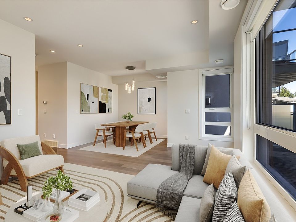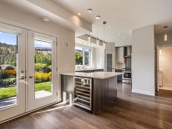 Modern design. Endless views. A rooftop vibe that’s next-level. Welcome to one of the most coveted end units at Peak Point—a sleek 3-bed, 4-bath townhome with a smart 3-level layout, versatile bonus room & five incredible patio spaces that deliver seamless indoor-outdoor living at every turn. Each level offers both style and function—from the bright, open-concept main floor with high ceilings, gas fireplace & dual dining areas, to the spacious entry-level bonus room with its own full bath—perfect as a home office, guest suite, gym, or media room. The kitchen is bold & modern, featuring a gas range, built-in wall oven, beverage fridge, pantry & full stainless steel appliance package—made for hosting or stylish everyday living. But the true showstopper? The rooftop patio—a total vibe with panoramic lake & mountain views, gas & water hookups & pergola. Summer nights? Sorted! Upstairs brings the wow-factor with a standout primary suite—complete with walk-in closet (built-ins included) & a sleek, spa-inspired ensuite. Two more bright bedrooms—one with its own patio— and a full bath complete the top floor. Bonus points: high-efficiency Navien tankless water heater, rare double garage with two bay doors & double driveway. All of this, just steps from Rose Valley Regional Park, scenic trails & Rose Valley Elem.—plus a short drive to WK Multi-Sport Dome, shopping & downtown Kelowna. Hot tubs allowed. 2 pets welcome (no size restrictions). This is the lifestyle you’ve been waiting for!