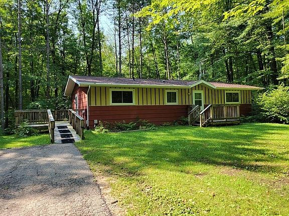 3.27 acres of privacy!!! Home features 2 large bedrooms, 1 full bath and a 24x24 -2 car garage with concrete floor. Ramp deck for easy access into the home. Full unfinished basement for storage. Located in the Town of Hull with a small creek running through the back yard. You will love all the sounds of nature and abundance of mature trees. Call today for a private showing!