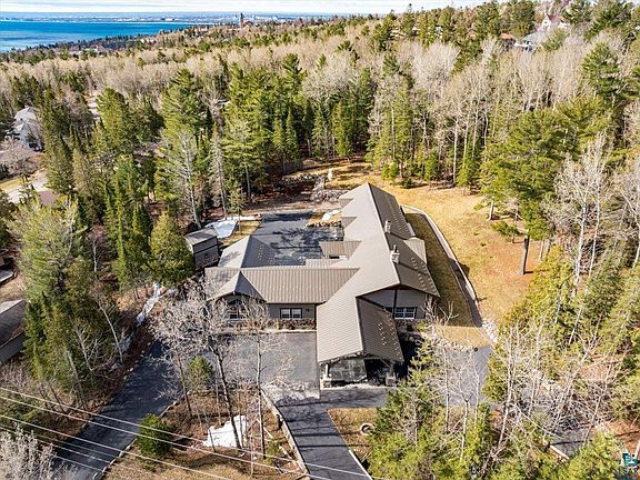 Step into the realm of Duluth's most unique homes and prepare to be captivated by the splendor of 1818 Ridgewood Court. Nestled amidst the tranquil enclave of Congdon, this private sanctuary sprawls across four expansive lots, offering a retreat unlike any other. As you approach, a valet-style carport with a heated slab beckons, hinting at the luxury that lies within. Crossing the threshold, a grand foyer welcomes you, just a prelude to the array of breathtaking surprises awaiting your discovery. Venture further to find a kitchen adorned with hickory cabinetry, stone archways, and a soaring cathedral ceiling. A spacious breakfast and coffee bar area invites you to gaze out through expansive windows onto your sprawling estate, a haven for entertaining, with ample space to host gatherings. The journey continues through a formal dining room, seamlessly connected to an awe-inspiring great room featuring a custom-built rock fireplace, commanding attention as the heart of the home. But the allure doesn't end there, five bedrooms, five bathrooms, each meticulously appointed, await your exploration. The master suite is a sanctuary unto itself, boasting a waterfall jetted tub enveloped in exquisite stonework, a cozy fireplace, and a suite wet bar, ideal for unwinding after a long day. A sprawling walk-in closet ensures effortless organization, while a private deck offers serene views of the backyard. Descending to the lower level reveals yet another realm of relaxation and entertainment, with a wet bar area, wood fireplace, ample storage, and a bathroom. An attached 3+ car garage and a spacious two-story storage shed, or playhouse cater to practical needs, while a sprawling patio invites outdoor enjoyment amidst the serene natural beauty. Last but definitely least, check out the 42x22 recreation room, a veritable oasis boasting a second kitchen, bathroom, hot tub, gym, dance floor, stage, and a loft, that could be your 6th bedroom. This magnificent abode spans over 7100 square feet of exceptional living space, boasting energy-efficient features and over an acre of sprawling land. Experience the epitome of luxury living! Schedule a showing today and prepare to be enchanted.