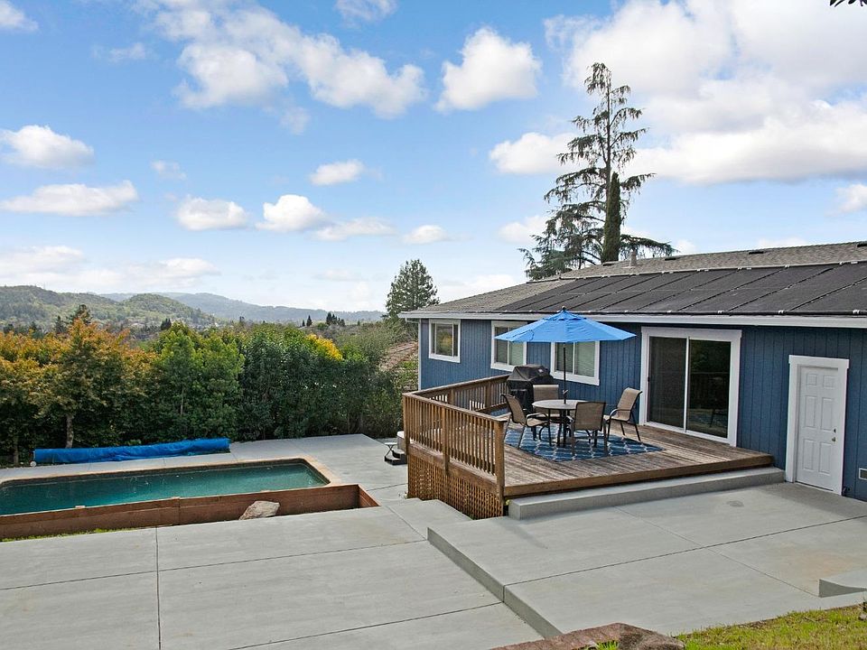 This delightful Rincon Valley property offers comfort, space, and exceptional outdoor living that is highlighted by a sparkling pool, hot tub, and views. The bright living room connects to an attached deck, creating a welcoming area to unwind. The eat-in kitchen opens to the family room and back deck which overlooks the pool and views. Upstairs is completed with a primary bedroom with walk-in closet, two additional bedrooms and a full bathroom. On the lower level, you'll find a spacious area, currently used as a bedroom but could also function as a game room or office. The downstairs area includes a laundry room, full bathroom, and additional space ideal for a mudroom after a swim. Some updates include replacing the front/back decks, sliders throughout, pool pump, hot tub, garage door, interior and exterior paint, along with a rebuilt wood retaining wall/steps and a stone retaining wall. Located within the highly desirable Rincon Valley School District, this property offers a peaceful and convenient home that is sure to be the pool party pad of the summer. Welcome home!