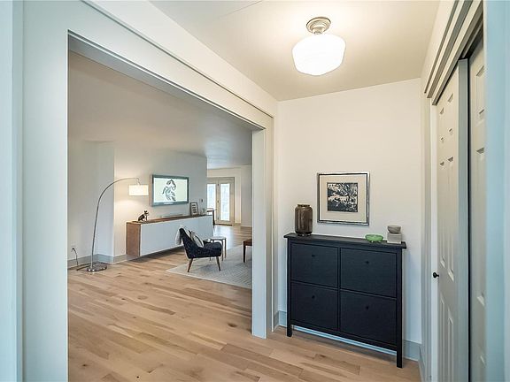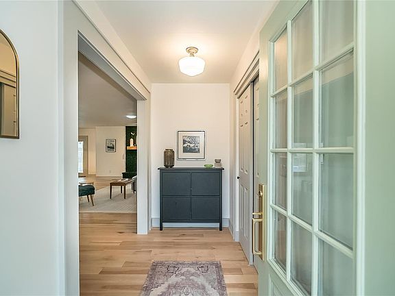 Enter this ranch style home from the expansive front porch into a new front door. Newer wide plank, Birch wood floors throughout the main level and fresh paint greets you into the large greatroom with an extra bonus space leading to the formal dining area. The efficient kitchen features newer stainless appliances, spacious pantry and a charming breakfast area leading to a large composite deck overlooking the backyard. Inside you will love your main floor laundry room! The great room offers a gas fireplace and a built-in mid-century style credenza. There are 3 bedrooms, including the primary suite which features a gorgeous bath that has been completely renovated with new penny tile floor, vanity, lights, faucet, tiled shower and a glass door. A spacious walk-in closet completes this stunning private oasis. The lower level features new LVP floors, fresh paint, newly renovated bath, storage and sleeping area and walks out to your spacious backyard. Come and take a look, it is stunning!