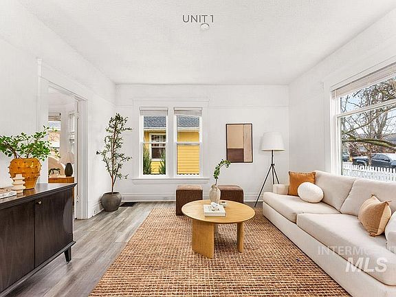 Rare turn-key tri-plex in Boise’s Historic North End, an outstanding income property that blends timeless charm with modern upgrades. The spacious main-level unit offers a large living / dining room, full kitchen, and large bedroom complete with en-suite bath and an adjacent room ideal for a guest bedroom or office. Upstairs, two fully equipped one-bedroom units each feature updated kitchens and full bathrooms. All three residences enjoy fresh paint, new LVP flooring, contemporary lighting, updated kitchens, a newer roof, and updated HVAC. Tenants share a large main-floor laundry room. The expansive, fully-fenced backyard comes with plans to potentially add garages and a fourth unit/ADU, delivering immediate cash flow plus significant future upside. Strong rental income at projected ~$4,100 per month, this property is truly move-in or rent-ready and perfectly positioned just minutes from Hyde Park, Camel’s Back Park, and downtown.