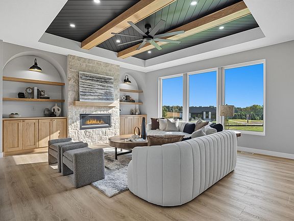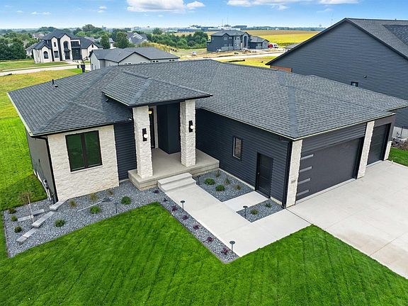 This one-of-kind custom walk-out home 6 bedrooms, 4,5 bathrooms, 3 stall garage with big ceiling fan, and over the top finishes throughout. Living room features a gas fireplace with floor to ceiling stone, with mantle, built-ins with arched details and ceiling beams.This kitchen is truly the heart of the home, featuring all custom cabinetry, Cambria countertops, and full height backsplash. Enjoy the wormth of under-cabinets and toe kick lighting. Enjoy the 9ft island, custom built hood, pot filler that makes cooking a dream. Appliances are all top-of-the-line, built in dishwasher, microwave, Family smart hub refrigerator and gas stove. Master suite is design for comfort and privacy, with custom ceiling and soundproof walls. Step into a master bathroom where you'll find heated floors with a smart thermostat a free standing tub, double vanity with thicker edge countertop, The custom shower with multiply shower heads, including a relaxing rain shower, and privet toilet room with smart toilet. Downstairs, the lower level opens up to an oversized Family room and a wet bar perfect for entertaining. Sliding doors take you out to a relaxing oversized patio space, both coverd and uncovered. The in-law suite here is truly special, offering in-floor heat, a custom tile shower with a rain head, and built-in drawers with elegant arched design. The exterior is beautifully finished with professional landscaping, a full sprinkler system, and low-voltage lighting that highlights the home's stunning features at night. Listing Agent is licensed Real Estate Agent in the state of Iowa/Builder.