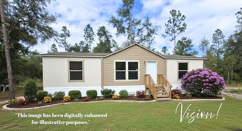 Vision! This brand-new 2024 manufactured home has never been lived in. Experience the perfect blend of affordability and luxury in this spacious doublewide, ideal for those who appreciate the convenience of mobile home living without sacrificing comfort. Nestled on 10 rare, high-and-dry acres (no flood zone), this property offers unmatched peace and privacy. The driveway is already cleared, with a natural buffer left between the home and the paved road for seclusion. Location is everything: Less than 1 mile from world-renowned Peacock Springs. Under 10 miles to the historic Suwannee River. Conveniently situated on a paved road. Whether you’re looking for a serene retreat or a full-time residence, this property delivers tranquility and natural beauty in every direction. Owner financing considered with large down payment — contact agent for details. Don’t miss your chance to own this peaceful slice of North Florida paradise! "Some images in this listing have been virtually staged or digitally enhanced by artificial intelligence for illustrative purposes only".