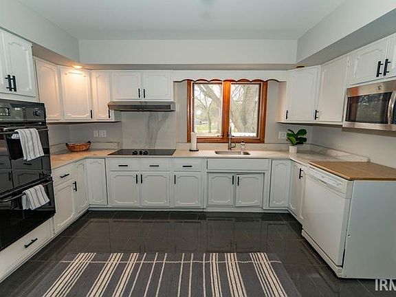5 minute drive to campus-or toll road- 10 minutes from airport Walk out lower level, fenced yard, laundry room, baths and kitchen newly remodeled with quartz/granite, bay window, Full wall brick surround with limestone hearth for fireplace New C/A Just North of Notre Dame Pool table remains