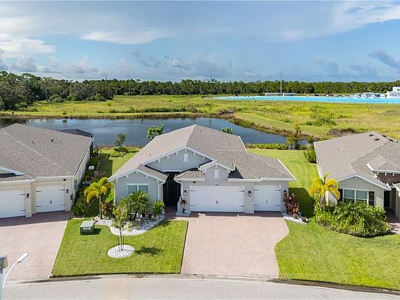Welcome to your dream home in Brightwater, North Fort Myers' premier lakefront community! This beautiful lakefront view D.R. Horton Shelby model, spanning 2,221 square feet, is a single-story masterpiece with 3 bedrooms, 2.5 baths, and a spacious 3-car garage-perfect for vehicles, storage, or hobbies. Step into an open-concept layout bathed in natural light, showcasing a chef's kitchen with sleek granite countertops, stainless steel appliances, a large island, and a walk-in pantry ideal for culinary enthusiasts. The great room flows into a cozy dining area, ideal for lively gatherings or quiet nights in. The Master bedroom feels like a luxury retreat, with a massive walk-in closet, dual sinks, and a spa-inspired shower, and upgraded carpet for added comfort. Two extra bedrooms offer space for guests, a home office, or creative projects. All bathroom have granite countertops. The oversized lanai is where the magic happens-stunning lake views that make every sunrise or sunset unforgettable, complete with cutting-edge electronic shutters for easy storm protection. Accordion shutters throughout add extra security and peace of mind. Lovingly cared for by its original owners, this move-in-ready home shines with modern touches like spotless flooring and fresh paint. Best of all, it's just steps from Brightwater's jaw-dropping 5-acre Crystal Lagoon, with its beachy shores, lap lanes, and resort-style vibe, trails, and fun community events. Super-low HOA fees of just $1,052 a year keep your costs down, and no flood zone means NO FLOOD INSURANCE! Priced at $445,000, this upgraded lake-view beauty delivers unbeatable value in a vibrant community. Don't miss your chance to own this Florida dream home-schedule a showing today and fall in love with Brightwater living!