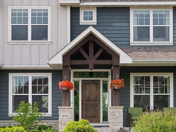 Welcome to unparalleled elegance at 18182 72nd Ave N, nestled in the prestigious Maple Brook neighborhood of Maple Grove. Crafted with impeccable quality by Creek Hill Custom Homes, this meticulously maintained residence showcases custom touches and sophisticated design at every turn, offering a lifestyle of refined comfort and effortless entertaining. Step inside to discover a seamless blend of luxury and functionality. The main floor features a stylish office with glass French doors, perfect for remote work. The dream kitchen is a chef's masterpiece, boasting custom cabinetry, an on trend tile backsplash, an expansive center island ideal for gatherings, a dedicated coffee service area, double ovens, and a large walk-in pantry. Flowing effortlessly into both the informal and formal dining areas, this open-concept space is designed for memorable entertaining. The formal dining room, complete with a built-in buffet, elevates every special occasion. Unwind in the cozy living room, where custom built-ins and a stunning stone fireplace create an inviting ambiance. Step out to the deck to savor morning coffee with sunrise views or relax with breathtaking sunsets. The expansive backyard is a private paradise, featuring a professionally installed paver patio and a luxurious hot tub. With ample space for a future pool, this outdoor haven is perfect for both relaxation and recreation. The light-filled lower level, with its walkout design, offers versatile space for a ping pong table, game area, or lounging, plus a convenient bedroom ideal for guests or a home gym. Upstairs, four beautifully appointed bedrooms await. The primary suite is a light and airy retreat with a vaulted ceiling, a spa-inspired bathroom featuring a walk-in shower, soaking tub, and a large walk-in closet with custom shelving. Two bedrooms share a jack and jill bathroom, while the fourth enjoys an ensuite bathroom. The upper-level laundry adds everyday convenience. This home shines with recent updates, including a new washer, dryer, refrigerator, microwave, and more. Located in a prime Maple Grove spot, you're moments from Lions Park-perfect for catching fireworks from your deck-Gleason Sports Complex, and Rush Creek Elementary. Indulge in the vibrant shopping and dining scene at nearby Arbor Lakes. From the custom mudroom with built-in lockers to the thoughtful details throughout, this home is a rare gem that blends luxury, practicality, and prime location. Don't miss your chance to own this Maple Grove masterpiece =. Schedule your private showing today!