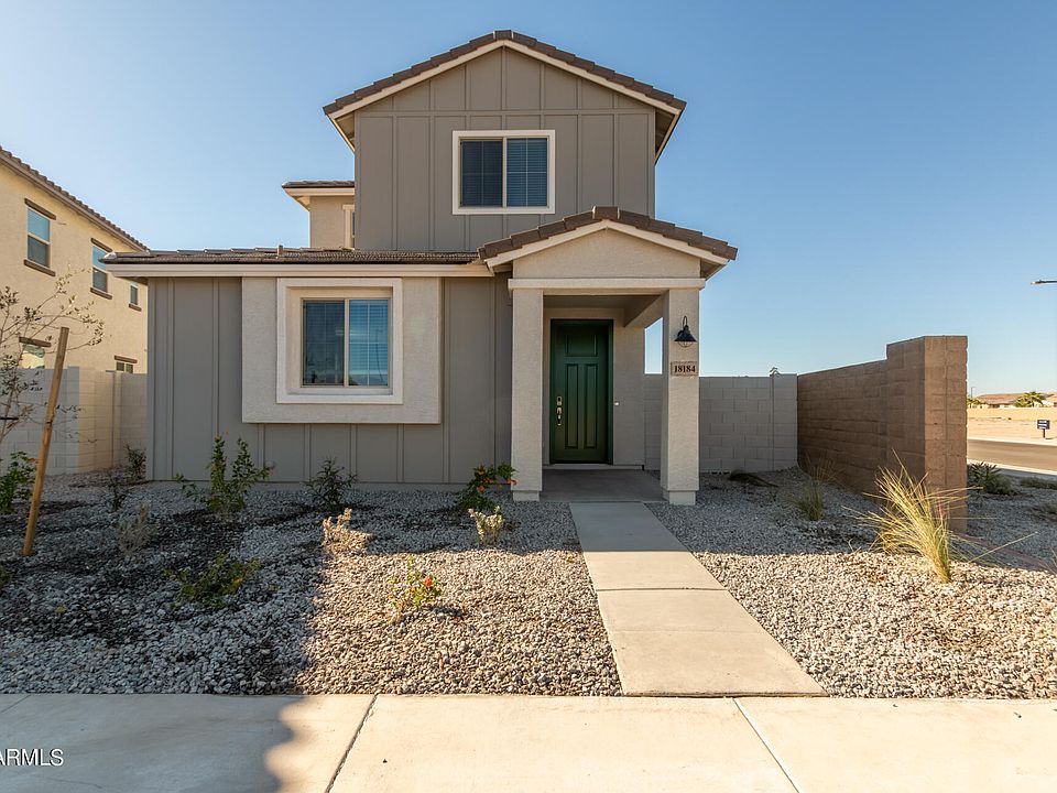 Move-In Ready with window coverings! First of its kind in the desirable master planned community of Estrella. 4-bedroom, 3 bath High Performance Home consists of a first-floor open concept with the living room, dining room and kitchen creatively laid out with side yard patio AND first floor bedroom w/adjacent full bathroom. Upgraded flooring, countertops and 42'' white cabinets are just some of the features. Upstairs is a a large open loft, two secondary bedrooms, and upstairs laundry! Large primary suite with enormous walk-in closet and separate tub and shower. Home is equipped for home automation, and promotes a healthy lifestyle with a built-in air purify system. Enjoy front porch living with plenty of common spaces to enjoy the Arizona weather and nearby community center!