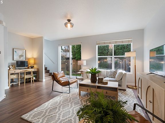 Open House Sat 11/15 12-2pm, Sun 11/16 1-3pm. Welcome to this beautifully updated and cozy home in the heart of Beaverton! This home has many tasteful and fresh updates throughout. The charming kitchen has professionally painted solid wood cabinetry, stainless steel appliances with a light and bright dining area. Enjoy a spacious great room perfect for family gatherings and an appointed space for a home office or additional eating area. The primary ensuite has a full bathroom and walk in closet. There are two more true bedrooms up with a second bath. The outdoor extended living area is fully fenced with decorative stamped patio and a new hot tub for unwinding and relaxing evenings. This home sits on a corner lot, no common wall providing more light, functional space and privacy. Close to Intel, Nike and walkable to cafes, restaurants and shopping. Don't miss out on this lovely ready to move in and love it home!