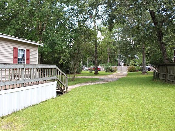 LOW TAXES!!!! UNRESTRICTED 1.13 ACRES!!! A happy 4 Bedroom, 2 Bath open concept floor plan with lots of space. Home has a large deck to entertain friends and family. There is a Fort out under the trees. You will love the additional STORAGE BUILDING WITH AC. The big lot affords you lots of options. There is also a place where the shed is located to put a second mobile home. There is electricity available for a second mobile home too. Driveway offers lots of parking. Located in Conroe ISD. Convenient to FM 1485, 242, I69, 99, and Gene Campbell Road.