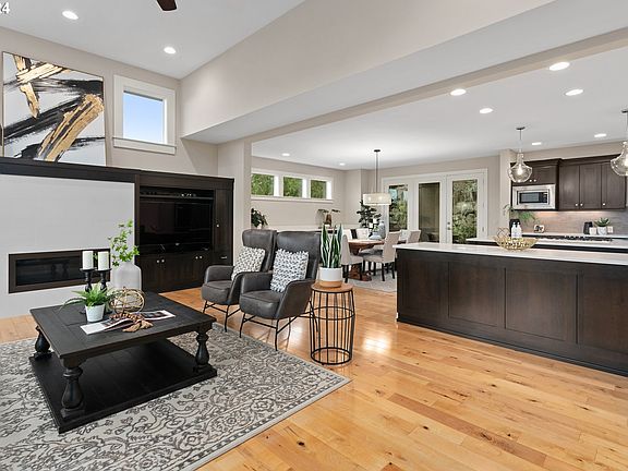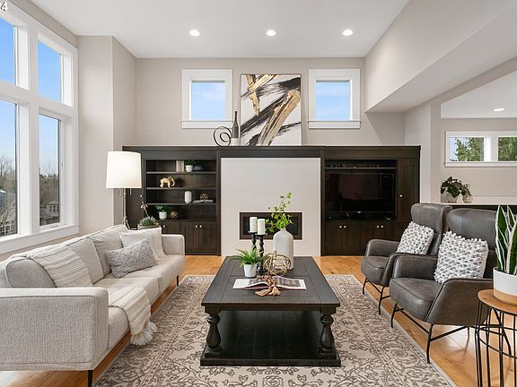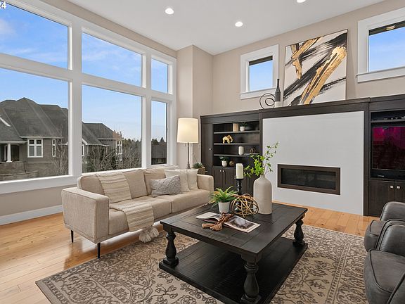 Custom built by Eslinger Homes this gorgeous light-filled home exudes understated elegance in an amazingly private location that offers outstanding amenities for any lifestyle. Premium Lake Oswego schools, the soon-to-be-opened community recreation center, Lusher Farms, nearby hiking trails and so much more. You may never leave your new neighborhood. This sophisticated contemporary home has wall-to-ceiling windows offering territorial views and expansive light for the open-concept vaulted great room warmed by maple plank hardwood floors and beautiful custom built-ins. The gourmet kitchen is a cook and entertainer delight with high-end appliances, extensive storage, a large island, and a dining area that opens to a covered patio. There is a large den that can also be used as a bedroom and a full bath on the main level. Upstairs you will find a huge primary suite with a large walk-in closet and classic bath with travertine tiles, dual sinks, a soaking tub, and a large, tiled shower plus two additional bedrooms and a bath. Retreat to the lower-level family room with a built-in wet bar and full bath. This home is fully accessible with a state-of-the-art elevator system to all floors. Privacy is supreme with an open space on one side and elegant landscaping to further enhance privacy and spaces for everyone. Welcome Home!