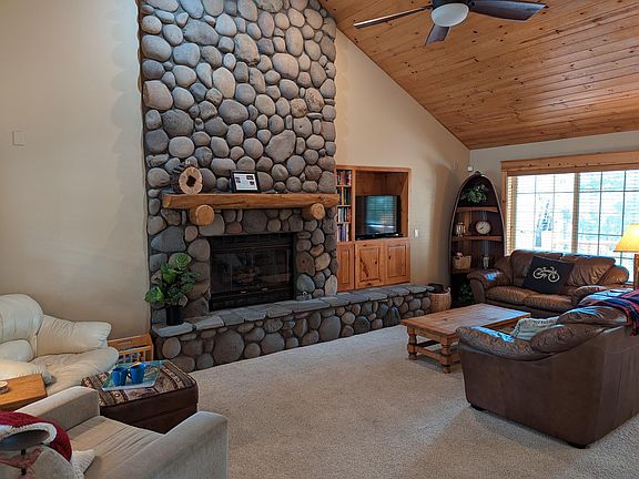 Beautifully crafted Sunriver mountain home! The cozy living room features a floor-to-ceiling river rock/gas fireplace and vaulted wood ceilings that create the perfect mountain retreat ambiance. Log/wood accents throughout give this home a warm, Sunriver feel. The kitchen showcases wood cabinetry, granite countertops, and stainless appliances - all beautifully framed by a large window. This home offers a spacious layout that ensures both flexibility and privacy for families or investment buyers. 3 car garage for your toys with 1 bay lock-off. Wonderful outdoor space with charming front porch, large covered back deck and private hot tub - all perfect for relaxing and enjoying the outdoors. Recent updates include new exterior paint, new deck railings, new heat pump with air conditioning, and refinished decks. Start making memories in this Sunriver home!