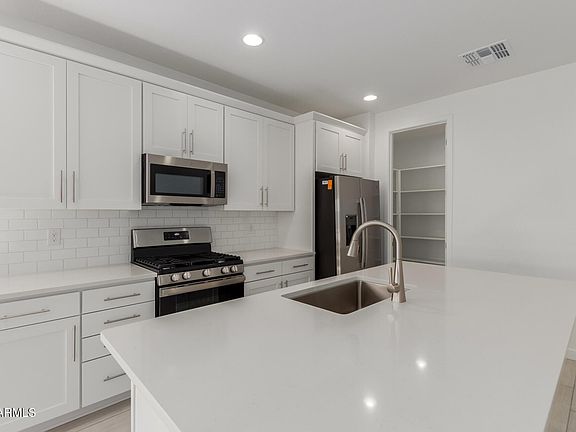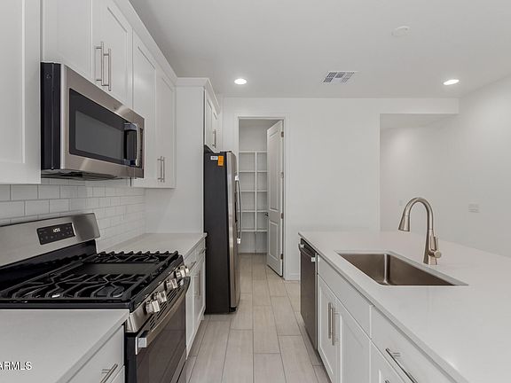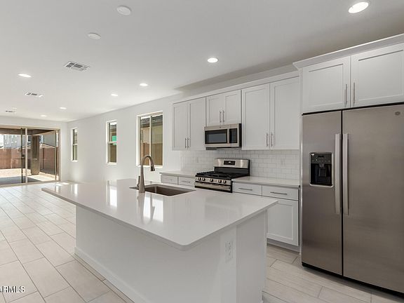 Welcome to the exceptional Sunstone floor plan, available in the highly sought-after Seasons at Pradera III community in Goodyear. This thoughtfully designed single-story, 3 car garage home offers 4 bedrooms, 2 bathrooms, a private study, and a 3-car garage. Step into a welcoming foyer that flows into an open-concept design, ideal for both everyday living and entertaining. The spacious great room seamlessly connects to a well-appointed kitchen featuring a center island, abundant counter space, and an adjoining dining area. Sliding glass doors provide easy access to a covered patio, perfect for enjoying Arizona's outdoor lifestyle. The owner's suite is a private retreat with two walk-in closets and a spa-inspired bathroom. Two additional bedrooms share a full bath. A dedicated study adds the perfect touch for those working from home or seeking a quiet space. This Sunstone home combines style, functionality, and flexibility in one stunning package, all within the vibrant Pradera III community. Here, you'll enjoy convenient access to parks, trails, and nearby amenities.