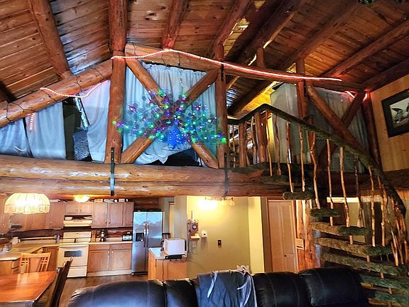 3 bedroom log home with two bathrooms on the main level. This property encompasses two parcels, totaling two acres, providing ample space for in-town living! The home features a bonus, lofted area, adding extra space that could be transformed into a cozy reading nook or home office. The main level,
