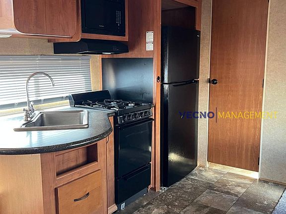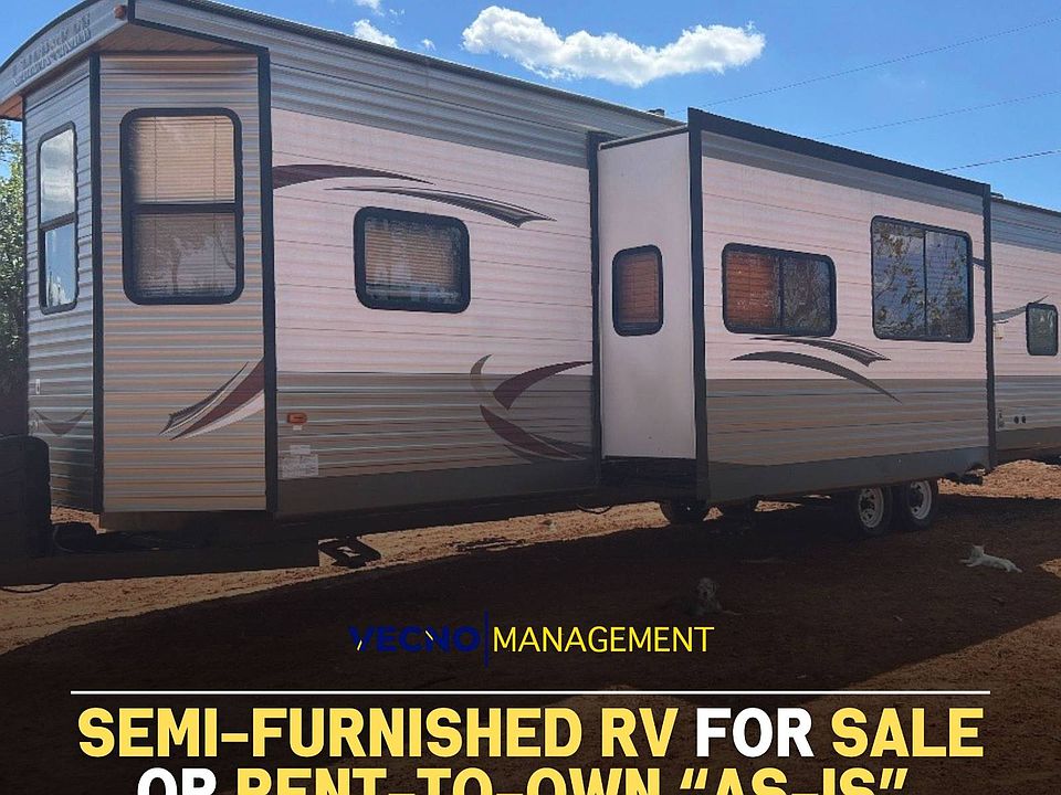 Experience the perfect blend of comfort, style, and value with this spacious 41-foot park model home featuring 2 bedrooms and 2 bathrooms. Thoughtfully designed for easy, comfortable living, this home offers an inviting atmosphere ideal for a full-time residence or a relaxing vacation retreat. Beautifully semi-furnished and move-in ready, it includes a dining table with chairs, microwave, stove, refrigerator, ceiling fan, and a bed with a comfortable foam mattress-everything you need to settle in and feel at home from day one. Available for Direct Purchase, with a Rent-to-Own option also offered, this park model provides an excellent opportunity to enjoy affordable living without compromising on quality. Please note: The home must remain on its current lot. This well-maintained home combines practicality with charm-an opportunity you won't want to miss!