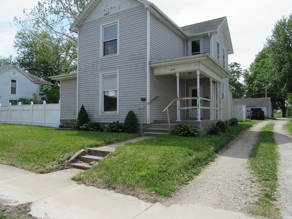 So much room offered with this turn of the century home, features include open concept with living room, formal dining room, beautiful stair case, hardwood floors, main level offers large master bedroom with full bath. Country kitchen, enclosed back porch, two staircases to upstairs where three large bedrooms and full bath are located. All of this plus privacy fenced back yard and two garages. With your own touches this home will be beautiful once again. Status IE
