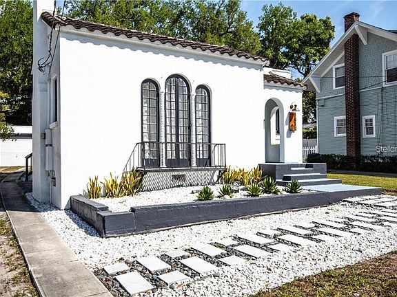This unique Spanish Mediterranean Bungalow is in the heart of one of the best neighborhoods in Downtown Orlando situated between Langford and Dickson Azalea park. Spacious living room with expansive ceilings plaster walls, rich wood floors , and fireplace. This home exudes charm , built in cabinets, archways, Floor to ceiling windows , and french doors that lead to first bedroom/den/office. Light and bright kitchen, split plan with huge master bedroom overlooking rear yard with ample closet and huge master bath with soak tub. Extra deep lot 50 x 176 with a detached two car garage.
