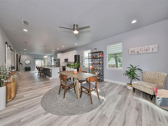 Why wait to build? This home was built in 2022 and is move-in ready with 3 bedrooms, 2 baths, and a 2-car garage, all with NO CDD and NO HOA FEES. Featuring luxury vinyl flooring throughout the home and granite countertops in the kitchen and bathrooms. Kitchen also includes an island for additional seating, stainless steel appliances, crown molding on the cabinets and recessed lighting. In the living room, you'll find a cozy built-in electric fireplace with a custom mantle, perfect for adding warmth and charm to the living space. The primary suite has a walk in closet, dual sinks and walk in shower in the bathroom. Inside laundry room for added convenience. Step outside the sliding doors to the covered back porch and fenced in backyard. Located in flood zone X, so NO flood insurance required. Convenient location, just down the street from Busch Gardens, with easy access to 275 and less than 15 minutes from Downtown Tampa. Don't miss the opportunity to make this exceptional property yours - schedule a showing today!