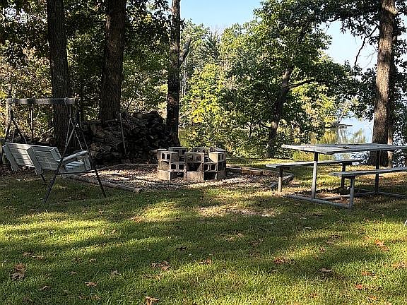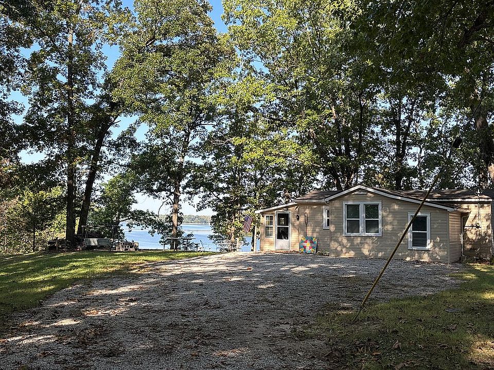 Modest bungalow on Raccoon lake. Dock partially covered by roof. Ductless heat and a/c covers whole house. Fireplace. Raccoon water co. water. Small storage room . New bathroom and kitchen fixtures. Stove, refrigerator, built in microwave. Enclosed porch with lot of windows. Fire pit, firewood ready. Small outdoor storage building. We’ve owned 7 years and have replaced sections of roof, total upgrade of electric panel and complete new wiring of house. Most of furniture and kitchen utensils will stay. Pontoon stays. Excellent views, beautiful sunsets from the house or lawn. Approx 1/8 mile, by water, from Castle Ridge.