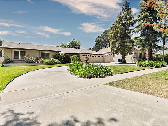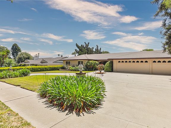 Welcome to your new and beautiful home! This beauty is located in an exclusive area of Upland facing the famous & historical Euclid Ave Bridal Trail. This cherished bridal/walking trail has been used by Upland residents for many generations! This single story custom built home was meticulously designed & built by famed Upland developer, Scottie Evans. Craftsmanship & attention to detail were not spared by Mr. Evans. Upon entry through the magnificent double doors, you will love the archways & large windows gracing the home with so much warmth & natural light. The LVP~ Luxury Vinyl Plank Flooring exudes such elegance as it gracefully flows through the home. Additionally, this beauty offers 2,496 square feet of glorious single story living space that includes a formal living room, formal dining room, large family room with a fireplace, built in book cases with glass shelving, high ceilings, ceramic tile flooring, slider to covered patio, & beautiful park-like setting backyard. Enjoy the 4 large bedrooms & 2 full bathrooms this home has to offer. The primary bedroom is very large with recessed lighting, touts a large window with shutters, a large walk in lighted closet, & a beautiful view of the backyard. The ensuite bathroom has a ceramic tile dual sink vanity, sunken tub, slider to the atrium, & plenty of cabinets for storing your personal items. The second full bathroom is very large with dual sink vanity, wall to wall mirror, LVP flooring, shower/tub enclosure, linen closet, crown molding, & window with shutters. The front & back yards afford a lot size of 15,600 square feet. The front yard is graced with curb appeal that is sure to please with its wide circular driveway & additional parking in front of the 3 car attached garage. The landscaping offers mature trees, green grass, flower beds, making this home so attractive. The backyard is so beautiful, as it is landscaped with a large green grassy area for the kids to play, & fruit trees, truly a heavenly place for you to relax and unwind. The large kitchen is stunning with Birchwood cabinets, granite countertops, stone backsplash, 5 burner gas stove, tile flooring, eat in kitchen area, recessed lighting, & 2 large windows offering incredible views of the backyard. This home boasts double-paned windows, security system, central vacuum system, RV parking, storage shed, shutters, LVP flooring, & ceramic tile flooring throughout the whole house. Don't miss the opportunity to own this gem!