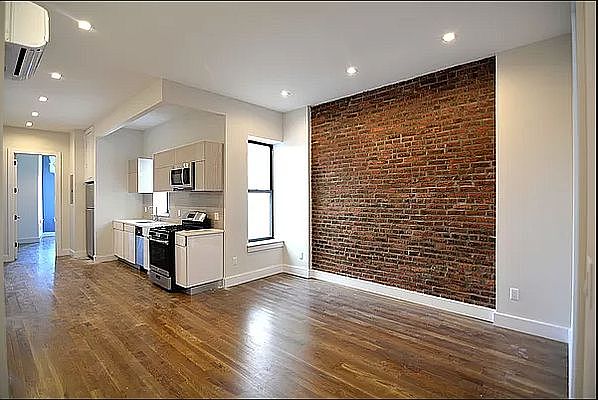 NO FEE Standout 4 bed/1.5 bath loft like apartment with 14' ceilings and an impressive amount of space and light within a gut renovated townhouse 3 blocks to the Myrtle-Wyckoff L/M. Expansive eat in kitchen with window - Full appliance package includes dishwasher, top of the line cabinetry and tons of counter space making this space perfect for those who love to cook. - Massive exposed brick living room and long corridors between rooms allows for privacy. Two bedrooms on each end of unit with space between them. Each bedroom will comfortably accommodate queen size furniture and has closet. Building includes rooftop, laundry and gym. No fee. Pet friendly. Guarantors accepted. This is a MUST SEE! Contact to view today! L/M at Myrtle-Wyckoff. Enjoy neighborhood favorites such as Milk and Pull, Bushwick Boulangerie, The Factory, The Bad Old Days and SO much more!