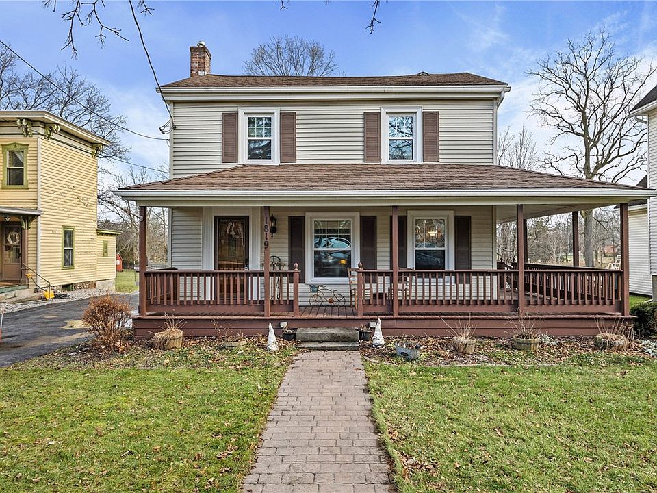 Exquisite colonial in the heart of the Village of Lima, where timeless elegance meets modern comfort. This beautifully updated home showcases exceptional old-world charm, highlighted by a classic wraparound porch that sets the tone for gracious village living. Inside, you’ll find 4 bedrooms and 2 full baths, generously sized rooms, and hardwood floors throughout, complemented by rich wood moldings and refined architectural details. The home features two fireplaces, creating inviting spaces for both everyday living and elegant entertaining. The updated kitchen opens seamlessly to a charming sitting area, while a formal dining room, full bath on the first floor, and an expansive living room provide both functionality and sophistication. Ideally located within walking distance to village shops, dining, and amenities, this is a rare opportunity to own a truly distinguished home in one of Lima’s most desirable settings. A must-see village classic.
