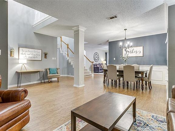 Impressive home located between 121 and 360 in the acclaimed Grapevine Colleyville ISD. Fabulous kitchen features designer paint, ss appliances, quartz counters, stainless basin sink, LED lighting and industrial pendant lights. Great functional space for all. Laminate flooring, updated lighting, and neutral paint will appeal to your inner designer. Bright foyer opens to spacious formal dining, sitting room, and half bath. Family room is open concept to kitchen. Master suite is well appointed with dual sinks, tub, and sep shower. Oversized secondary bedrooms and bath. Upstairs living boasts built in workspace, perfect playroom or study. Spacious backyard with patio and shed. Great walk out attic for storage.