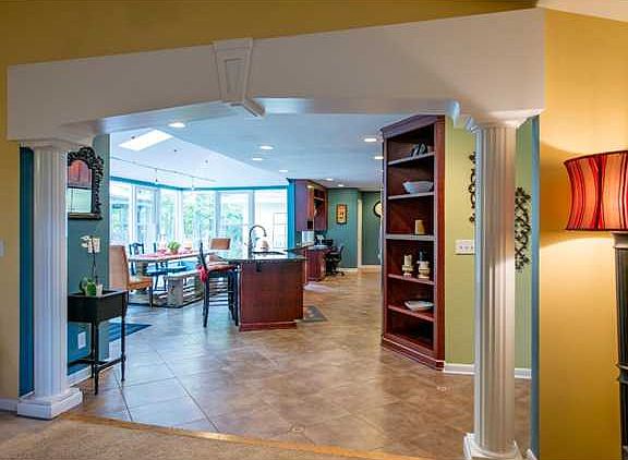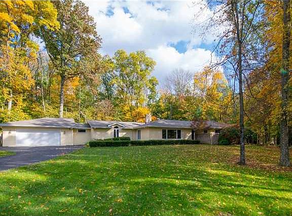Incredible home unlike any other! Improvements to original home are amazing & extensive! Complete 1st flr great rm renovation w/bar, entertainment & gaming area. Kitchen remodeled with cherry cabinets, granite counter tops, stainless steel appliances, custom tile work, enormous island & planning desk. Dining area is one of a kind: vaulted ceiling w/skylights, wall of windows overlooking patio, gazebo, & private wooded lot. Generous bedrm sizes. Master is exquisite with walk in closet & private bath addition. Double vanities, beautiful tiled shower, jetted tub & 2nd wall of windows overlooking wooded lot. Fireplace in living room has been refaced. Rec room in lower lev. Perfect combination of established home with new renovations situated on four gorgeous acres of wood