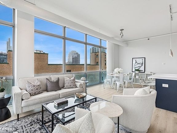 Be the first to enjoy brand new finishes in this ideal 2 bedroom, 2 bathroom corner unit condo in a desirable boutique building, the epitome of move-in ready. Welcoming foyer entry leads to the open concept living and dining area filled with natural light from the floor to ceiling windows. Freshly painted throughout with brand new luxury vinyl flooring in every room. Spacious living area offers cityscape views, custom window coverings and a large private balcony. Brand new custom kitchen features stylish two tone cabinetry with plenty of storage space, a large eat-in island with quartz countertops, chic backsplash and new stainless steel appliances. Separate dining area perfect for entertaining. Large primary suite comfortably fits a king bed with brand new flooring, dual closets, and ensuite primary bathroom. Second bedroom also has new flooring with ample closet space and contemporary guest bathroom. In unit washer dryer, new in 2022. Attached garage parking space available for 30K. Prime South Loop location nestled between multiple neighborhood parks, Grant Park, just step from the Lakefront Trail, Museum Campus, many shops restaurants, and entertainment with convenient access to Michigan Avenue, the Loop, public transit and expressways.