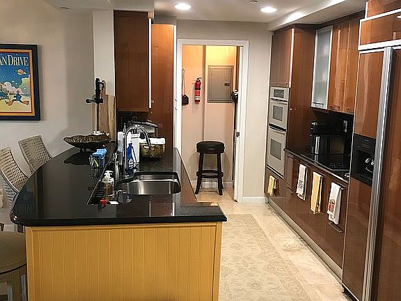 Luxury condo featuring wall of floor to ceiling impact glass, marble flooring, large open glass balcony with water views, high ceilings, European kitchen with Meile & Kitchen Aide appliances & laundry room. Secure garage parking, separate temperature controlled storage, well equipped fitness center, swimming pool, club room, business center and attended lobby. This Benetti floor-plan includes a spa like master bath with Jacuzzi, separate shower, water closet, double vanity and marble finishes. Oversized master walk-in closet. Great area for walking with easy access to the beach, shopping/restaurants.