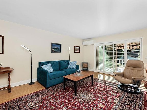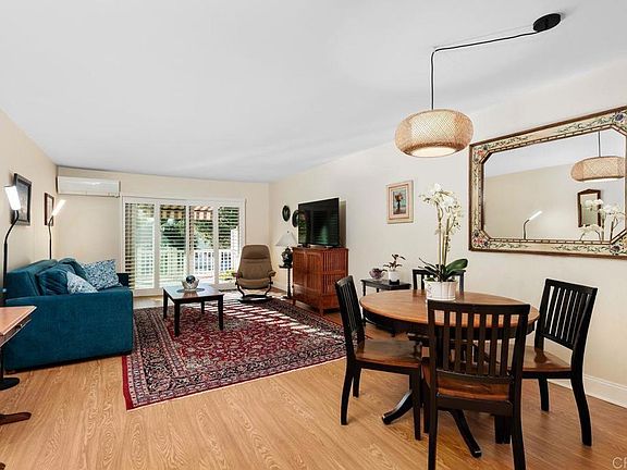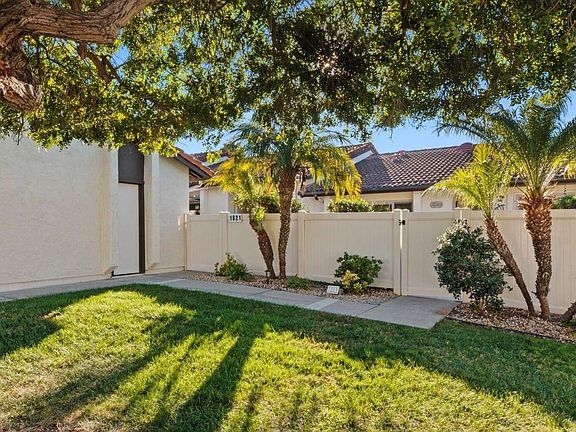 Single story home located in popular High Country Villas! Situated on 12 acres in the heart of Encinitas, this 55+ community offers it all... golf, tennis, 2 heated pools, recreation room, shuffle board courts, horseshoe pit, bocce ball, pickleball, billiards, library, walking paths, monthly happy hours, a variety of social activities, and only 4 miles to world famous Moonlight Beach. Close proximity to shopping, restaurants, and easy freeway access. An expansive gated courtyard entry with stylish pavers leads to this remodeled unit that is move-in ready! Features include dual pane windows, a fully upgraded kitchen with stainless steel appliances, water filtration system, and luxury vinyl flooring throughout. Both bedrooms are a good size and the baths have been recently updated. The large private back garden patio is perfect for outdoor dining or relaxing and features a retractable overhead awning and lovely views of an expansive parklike greenbelt area. Dual zone A/C, washer, dryer, and refrigerator convey. Topping it off, there is a garage with built-in storage.