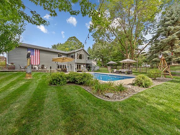 Prepare to be captivated by this beautifully updated 4-bed, 2-bath rambler, ideally situated on a peaceful cul-de-sac. This exquisite home, complete with an oversized 2-stall garage, is ready for you to move in and experience a perfect blend of comfort, style, and modern living. As you step inside, you’ll notice the attention to detail and quality in the numerous updates throughout. The main level features three spacious bedrooms, providing an ideal layout for living or accommodating guests. Fresh interior paint radiates warmth, while upgraded bathrooms exude modern elegance. The heart of the home, the kitchen, boasts new appliances, making it a joy for any home chef. The lower level is an extension of your living space, offering a fourth bedroom, additional bathroom, and versatile flex room. The expansive family room, perfect for entertaining or cozy nights, flows seamlessly into a charming custom bar area, complete with walkout access to your stunning backyard oasis. Step outside to discover your personal sanctuary—a private backyard that is nothing short of spectacular. Dive into the refreshing in-ground pool on hot summer days or unwind in the luxurious hot tub under the stars. For the adventurous at heart, an in-ground trampoline provides endless hours of fun! The raised stone patio is perfect for summer gatherings, while the newly installed California fence ensures your space remains secluded and serene. Convenience is key, and this home's prime location does not disappoint! Within walking distance to parks and public schools via city walking paths, your family will enjoy easy access to recreational areas and educational opportunity.With a recently replaced roof and essential updates like a new water softener and water heater, you can move in with confidence knowing that major components of the home have been thoughtfully addressed.This incredible rambler offers a harmonious blend of updates, amenities, and a location that caters to an active lifestyle. Whether you’re entertaining friends by the pool, enjoying quiet evenings in your cozy home, or exploring the nearby parks, this property is an opportunity you don’t want to miss.