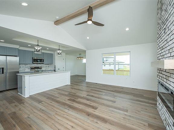 Modern ranch home in the desirable Shadow Creek neighborhood of Clive. 4 bedrooms, 3 bathrooms, and over 2,300 total square feet of finish on a large corner lot! Vaulted ceilings and LVP throughout the main living area w/ electric fireplace encased in floor-to-ceiling brick. The kitchen features a shiplap tray ceiling, gray shaker-style cabinets, white quartz countertops, tiled backsplash, and stainless-steel appliances. Finished basement with additional living space, wet bar, bedroom, and full bathroom. Sit back and relax on your covered deck and enjoy the pond view. Call today for your private showing.