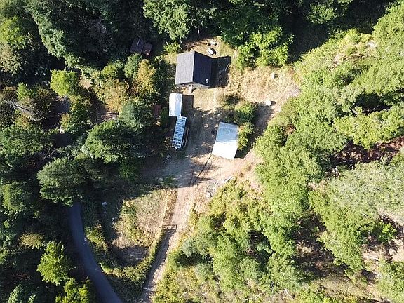 What a fun mountain get-away property! Just enough of the good stuff, without too much of the work... Situated on just under an acre, this unfinished 2/1 cabin offers an open 1,000 sf layout, with a large loft. It's a dry shell with some interior living basics installed - wood stove, Wedgewood cooking range, plumbed sink, propane fridge, & all essential bathroom fixtures are in & functional. Outside offers garden areas, fruit trees, native forest, & a babbling creek. +Plus+ 3 super cute sleeping cabins & a shared ''outdoor bathroom'' that's got all the fixtures plumbed to the septic system. Private setting with paved county road access, circle driveway with 2 entrances, storage & workspace in the rustic barn built nearly 100 years ago. Water comes from the creek that borders the property.