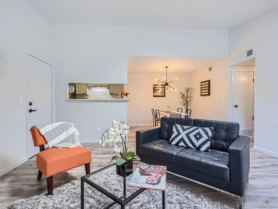 BEST VALUE TO OWN A 3 BR IN TOWN AND EXCELLENT INCOME PROPERTY ($2300+ Rent) !! New flooring throughout, new paint, stainless appliances etc. This lovely renovated 3 bedrooms, 2 bathrooms condo is conveniently located near Buckley AFB, shopping, restaurants, parks, recreation, and trails. Enter through your front door where your large family room, with an elegant stone fireplace, welcomes you home! You will love the open concept of this unit as the recently updated kitchen and dining room open up to the family room, providing ample space for gathering with your friends and family. As you ascend down the hall, you will find 2 large guest rooms and your main bathroom, complete with washer/dryer hookups. At the end of the hall, retreat into your master bedroom with two wonderful closets for added space, along with your own private 3/4 bathroom. The family room and 1st bedroom both have sliding doors that open to your covered patio where you can sit and relax on those warm summer evenings. This unit comes with a one car garage, two reserved parking spaces outside the patio and plenty of visitor parking. The HOA has recently replaced the roof, exterior siding, paint and panel boxes. HOA includes a community pool, playground, basketball court, snow and trash removal, water and sewer, building, roof, and grounds maintenance. This unit will go fast so don't hesitate.