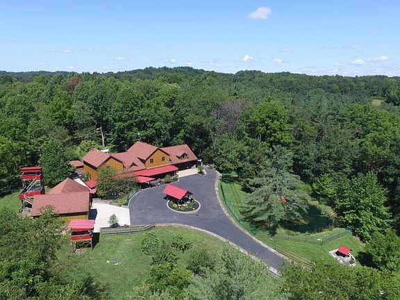Custom built beauty that you will easily fall in love with. Approximately 10 miles from the Hocking Hills region, this home features 3 bedrooms (option to convert to more) 3 Full baths and 2 half baths, covered front patio, open concept kitchen/living room combo with cathedral ceilings, 2 fully furnished kitchens, 1st floor laundry and primary bedroom with an ensuite equipped with slider doors. 14 acres of secluded land with a blacktop drive. Small stocked pond with seating area, additional covered seating areas throughout the exterior. A wrap around deck off the detached 2 car garage leading to a three story walkup feature currently used as an entertaining space. Follow the pavement to the hot tub oasis with a flat panel TV. Woods, paths,decks, galore. This is your new home or business.
