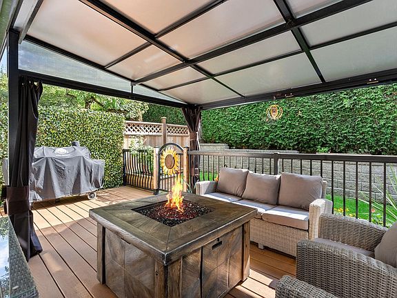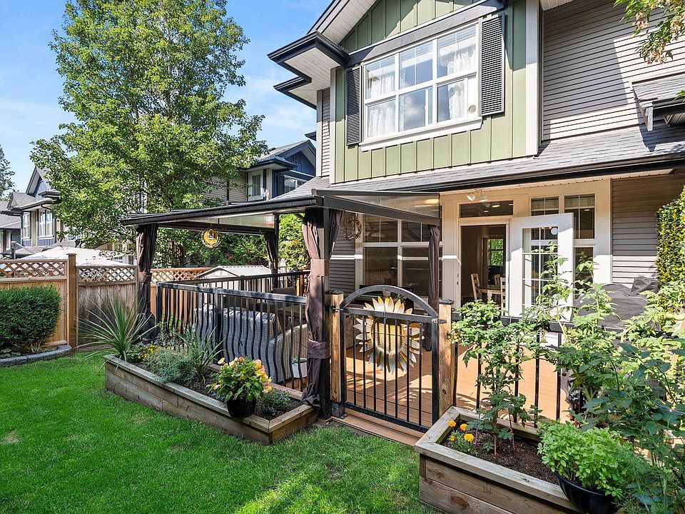 End-unit with double garage + full driveway = 4 parking! Walk out from the main floor and enjoy a private, hedged and sun-soaked south exposed backyard. A large covered Trex deck with retractable cover is ideal for relaxing or entertaining around the fire pit. Large kitchen, gas stove, eating area, and family room, plus a separate living/dining space and renovated powder room with updated flooring. Upstairs has 3 bedrooms, including a generous sized primary with walk in closet and ensuite with two sinks and a tub. The basement offers a rec room or 4th bedroom with a full bath. Forced air natural gas heating. Visitor parking stall right beside the unit. Short walk to Adam’s Road Elementary and Salish Secondary. This one checks all the boxes and is perfect for families.