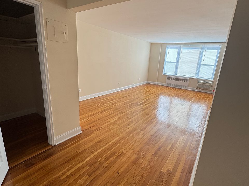 Welcome to your new home in a charming apartment complex just steps from the E and F subway lines. This spacious 1 bedroom apartment features a kitchen with a gas-burning stove and ample cabinet space perfect for all your cooking needs. The bright and airy living area offers plenty of room to relax, while hardwood floors and multiple closets throughout add both style and functionality. Enjoy the convenience of an updated, windowed bathroom, elevator access, and on-site laundry. Heat and hot water are included in the rent.