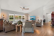 - Ceiling Fan(s), Double Vanity, Granite Counters, Kitchen Island, Open Floorplan, Primary Downstairs, Tile Shower, Vaulted Ceiling(s), Walk-In Closet(s)